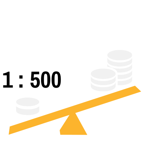 Start trading with minimal capital and maximize your trading profits with flexible leverage of up to 1:500.